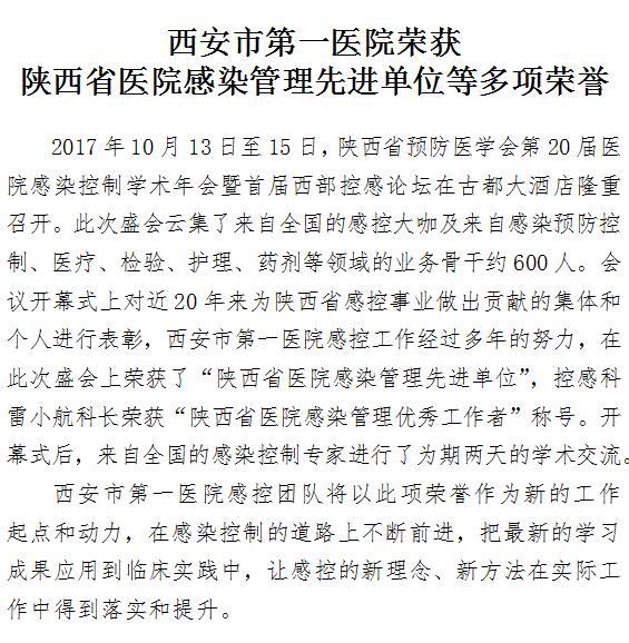 啄木鸟 荣获陕西省医院感染管理先进单位等多项荣誉
