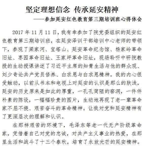 【心得体会】坚定理想信念 传承延安精神 ——王丹参加延安红色教育第三期培训班体会