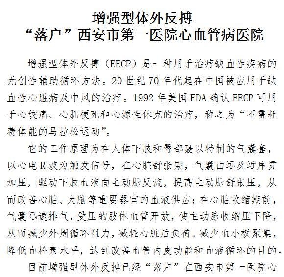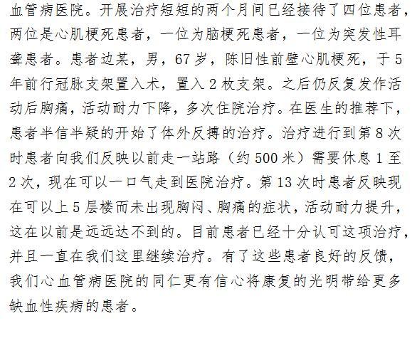 增强型体外反搏“落户”啄木鸟 心血管病医院