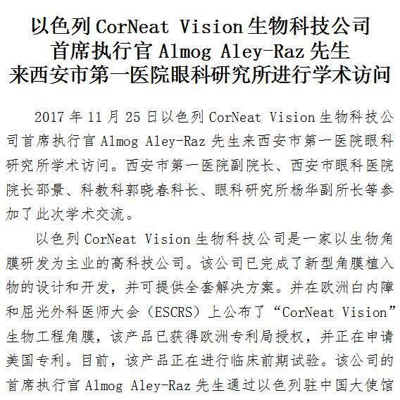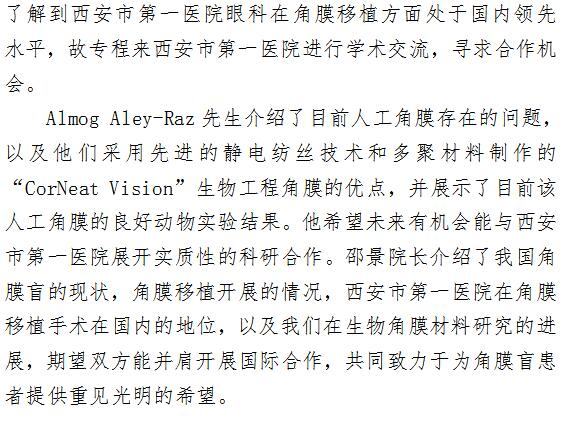 以色列CorNeat Vision生物科技公司首席执行官Almog Aley-Raz先生来一院眼科研究所学术访问