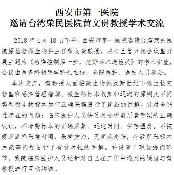 啄木鸟 邀请台湾荣民医院黄文贵教授学术交流