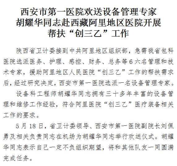 啄木鸟 欢送设备管理专家胡耀华同志赴西藏阿里地区医院开展帮扶“创三乙”工作