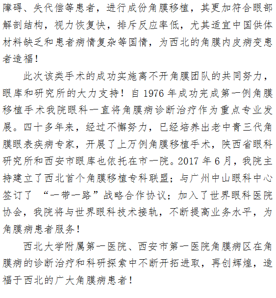 西北大学附属第一医院 啄木鸟 角膜病区开拓进取 再创辉煌