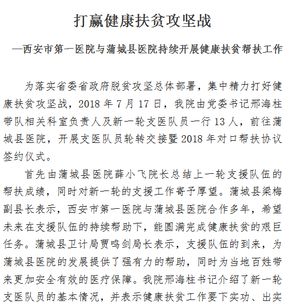 打赢健康扶贫攻坚战 —啄木鸟 与蒲城县医院持续开展健康扶贫帮扶工作