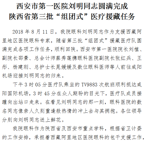 啄木鸟 刘明同志圆满完成陕西省第三批“组团式”医疗援藏任务