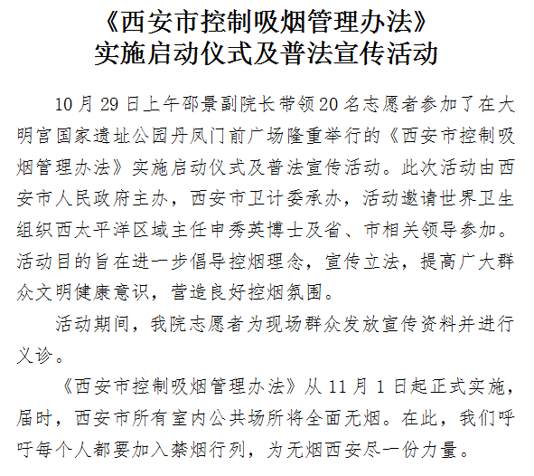 《西安市控制吸烟管理办法》实施启动仪式及普法宣传活动
