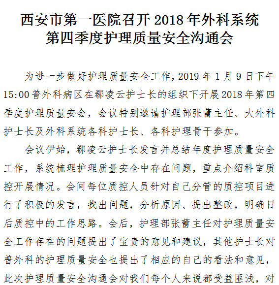啄木鸟 召开2018年外科系统第四季度护理质量安全沟通会