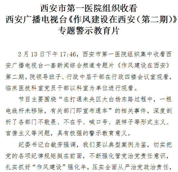 啄木鸟 组织收看西安广播电视台《作风建设在西安(第二期)》专题警示教育片