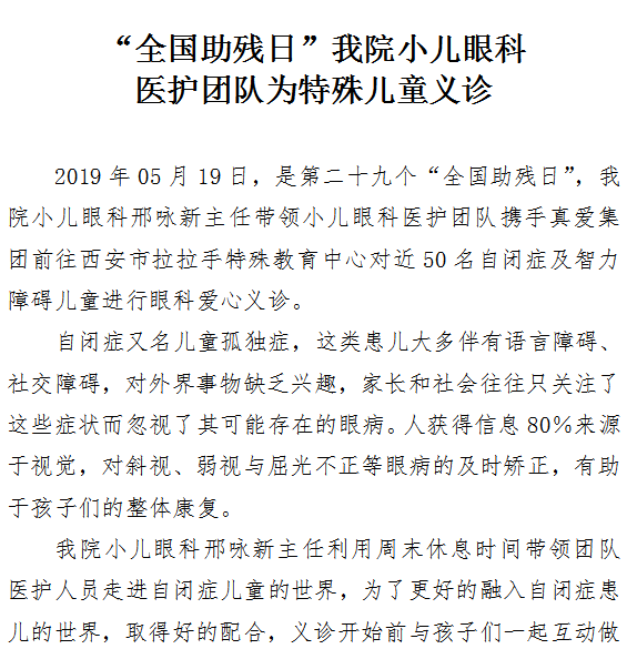 “全国助残日”啄木鸟 小儿眼科医护团队为特殊儿童义诊