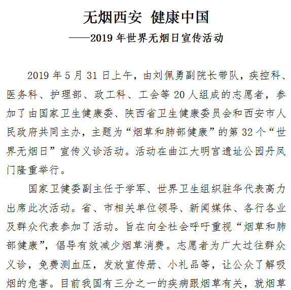 无烟西安 健康中国——2019年世界无烟日宣传活动