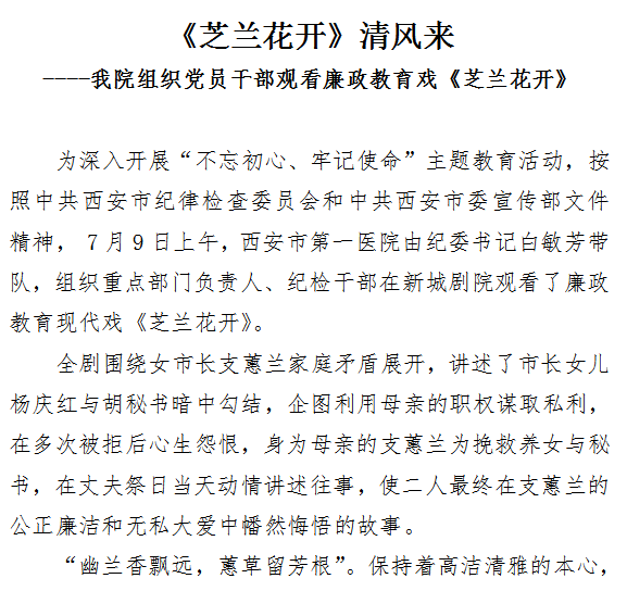 《芝兰花开》清风来 ----啄木鸟 组织党员干部观看廉政教育戏《芝兰花开》