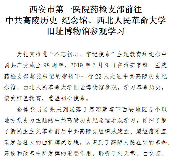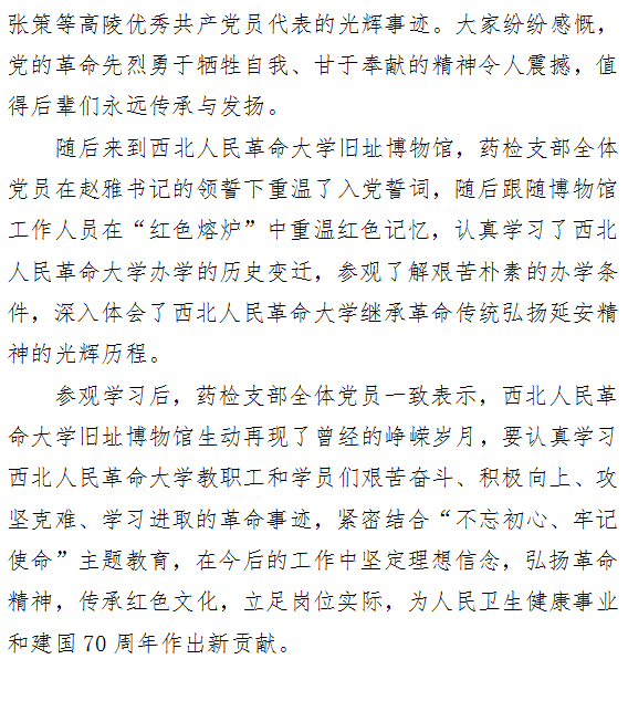 市一院药检支部前往 中共高陵历史 纪念馆、西北人民革命大学旧址博物馆参观学习