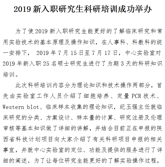 2019新入职研究生科研培训成功举办