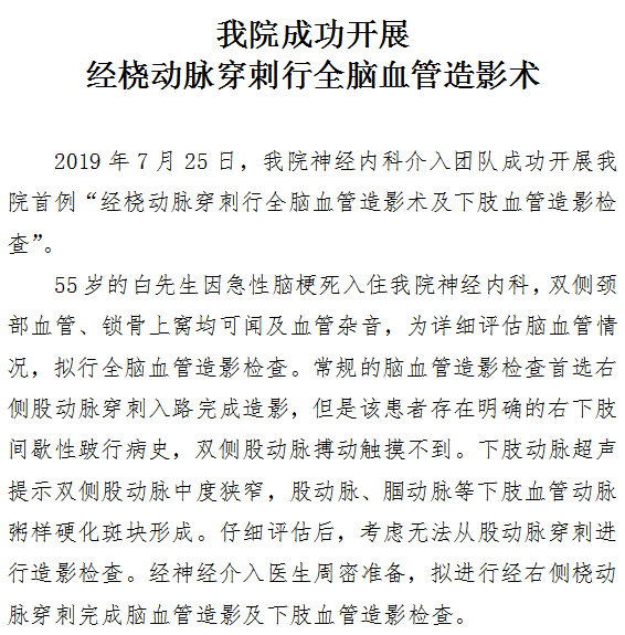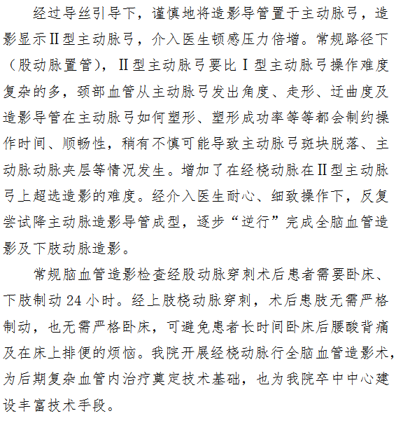 啄木鸟 成功开展 经桡动脉穿刺行全脑血管造影术