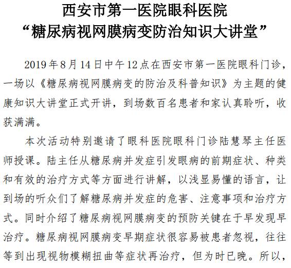 战胜“糖衣炮弹”——啄木鸟 眼科医院“糖尿病视网膜病变防治知识大讲堂”