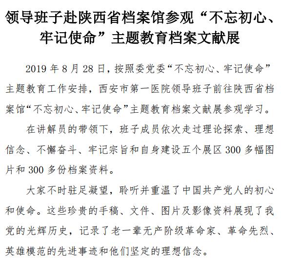 领导班子赴陕西省档案馆参观“不忘初心、牢记使命”主题教育档案文献展