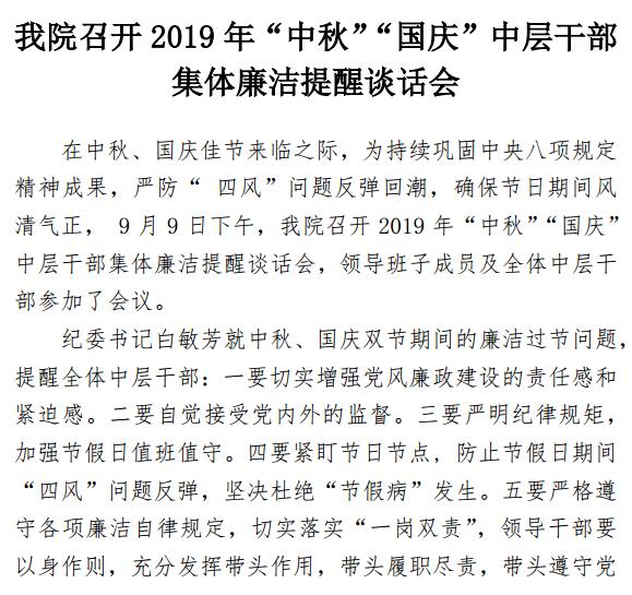 啄木鸟 召开2019年“中秋”“国庆”中层干部 集体廉洁提醒谈话会