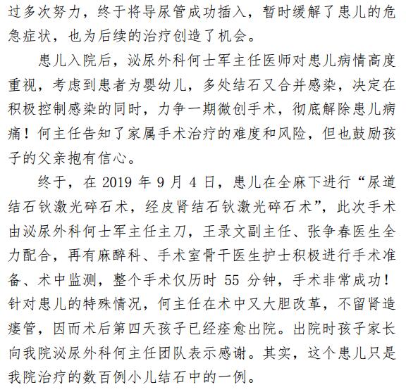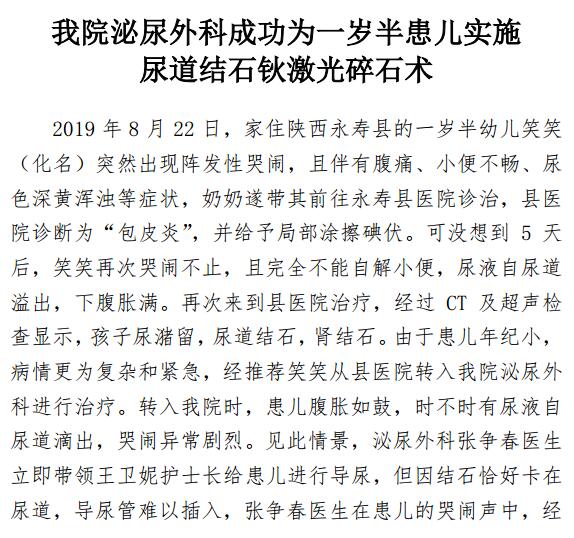 啄木鸟 泌尿外科成功为一岁半患儿实施 尿道结石钬激光碎石术