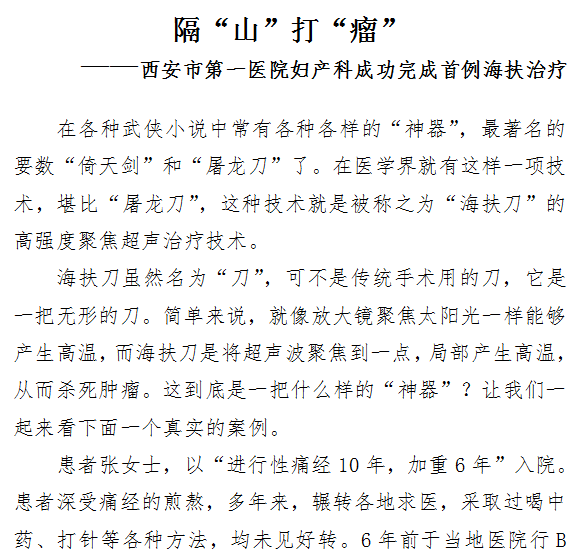 隔“山”打“瘤” ——啄木鸟 妇产科成功完成首例海扶治疗
