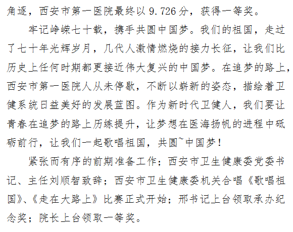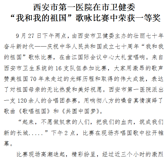 啄木鸟 在市卫健委 “我和我的祖国”歌咏比赛中荣获一等奖
