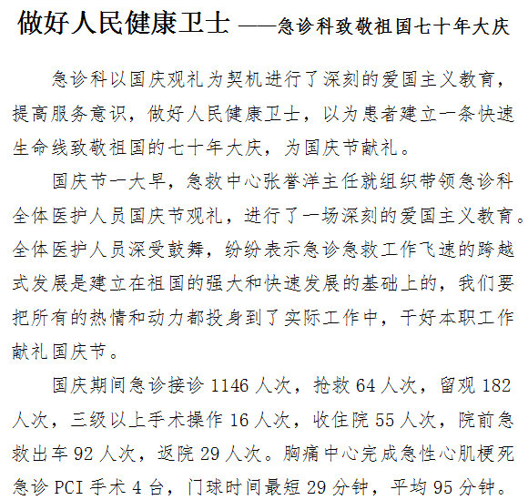做好人民健康卫士 ——急诊科致敬祖国七十年大庆