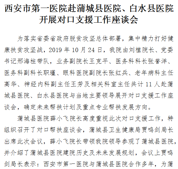 啄木鸟 赴蒲城县医院、白水县医院开展对口支援工作座谈会