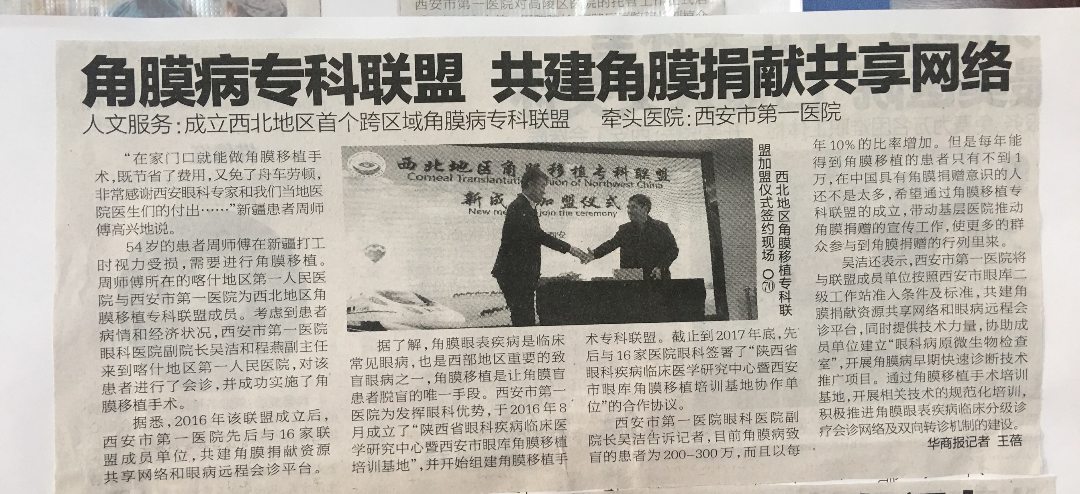 2018.1.17《华商报》角膜病专科联盟共建角膜捐献共享网络