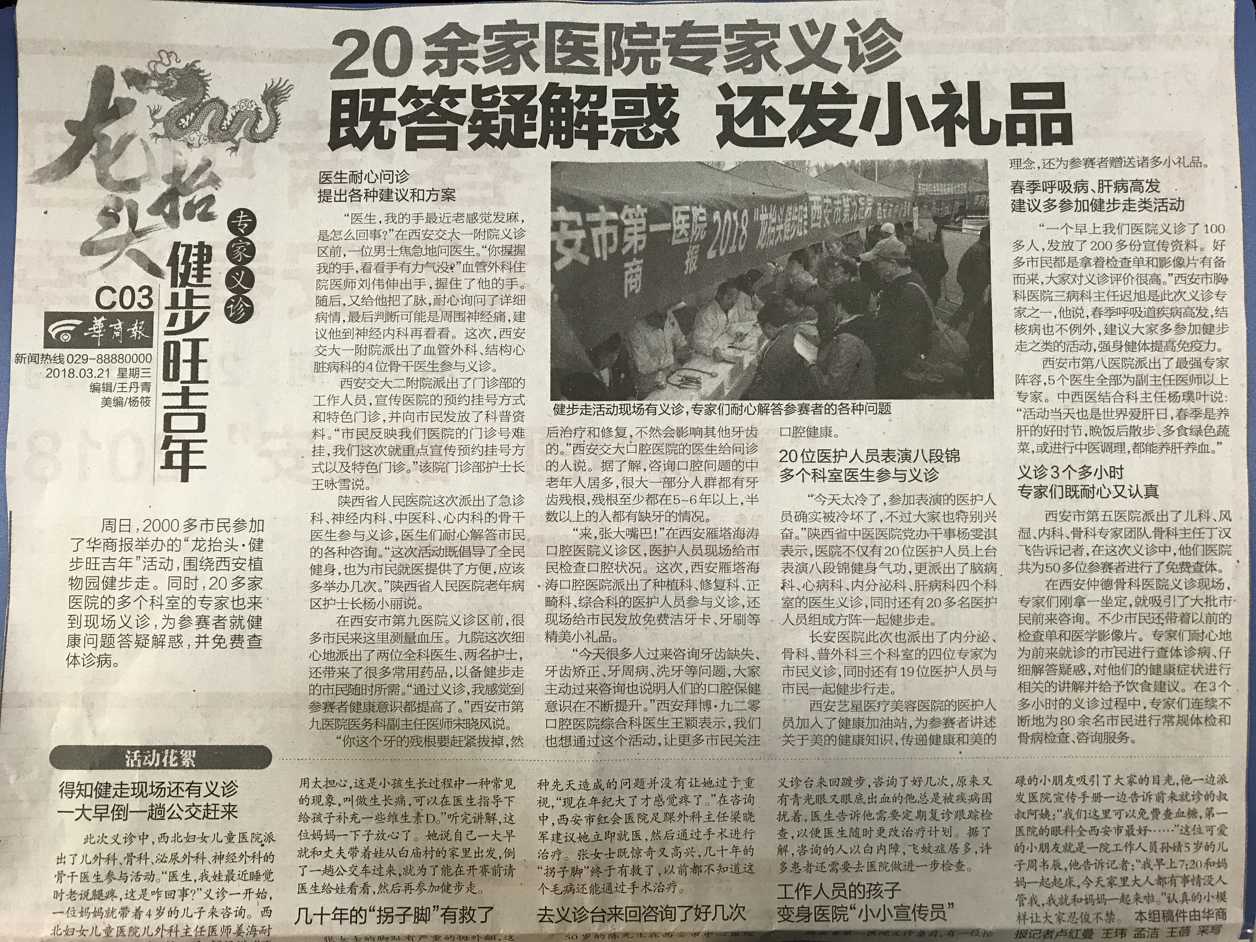 2018.3.21《华商报》20余家医院专家义诊既答疑解惑还发小礼品
