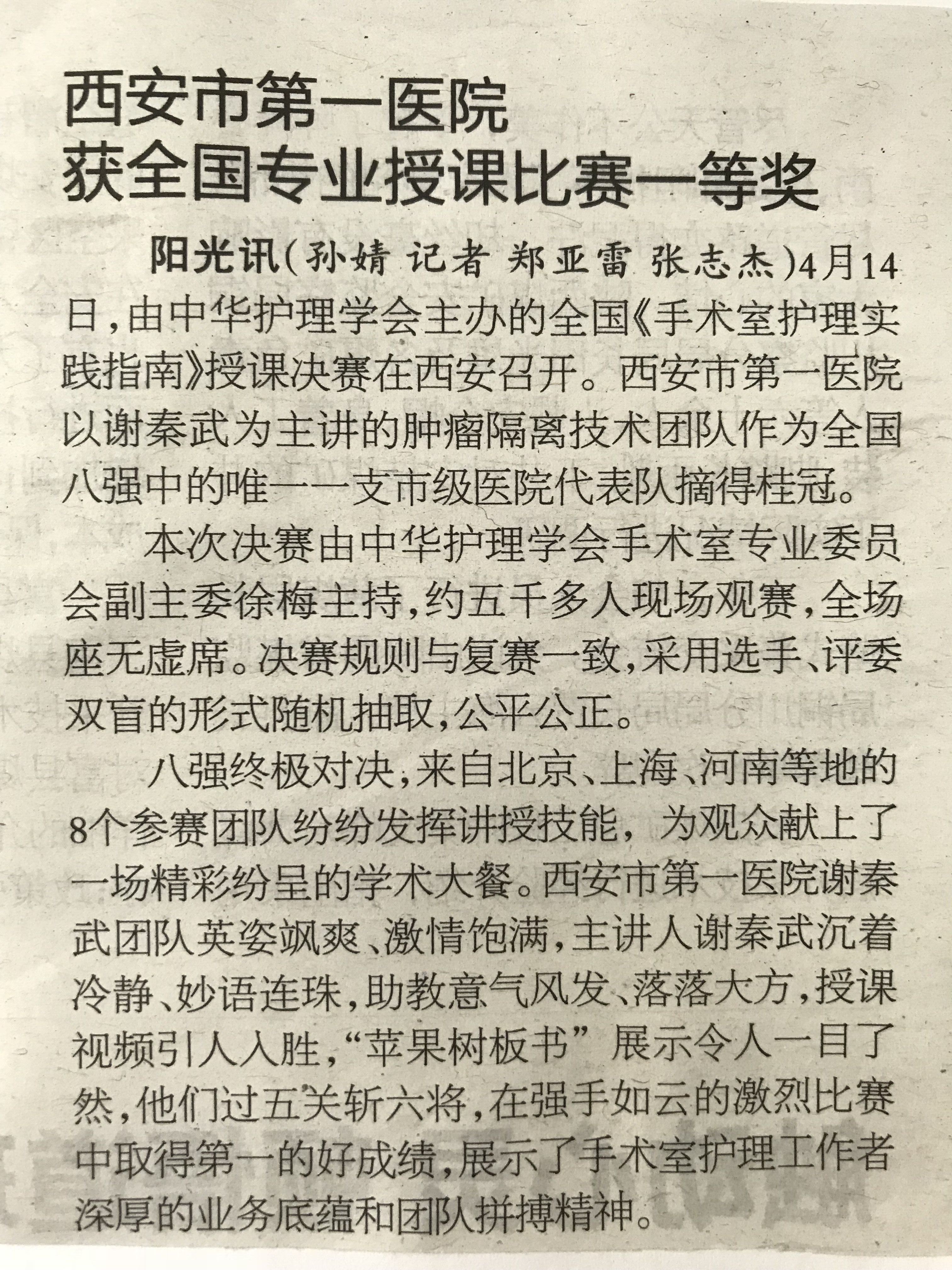 2018.4.17《阳光报》啄木鸟 获全国专业授课比赛一等奖