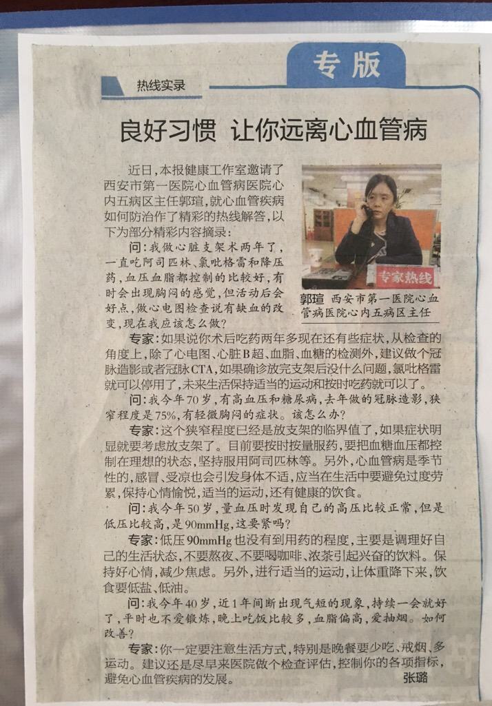 2018.4.27《西安晚报》良好习惯让你远离心血管病