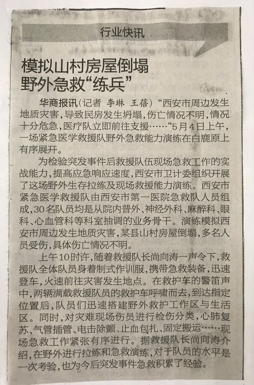 2018.5.8《华商报》模拟山村房屋倒塌 野外急救“练兵”
