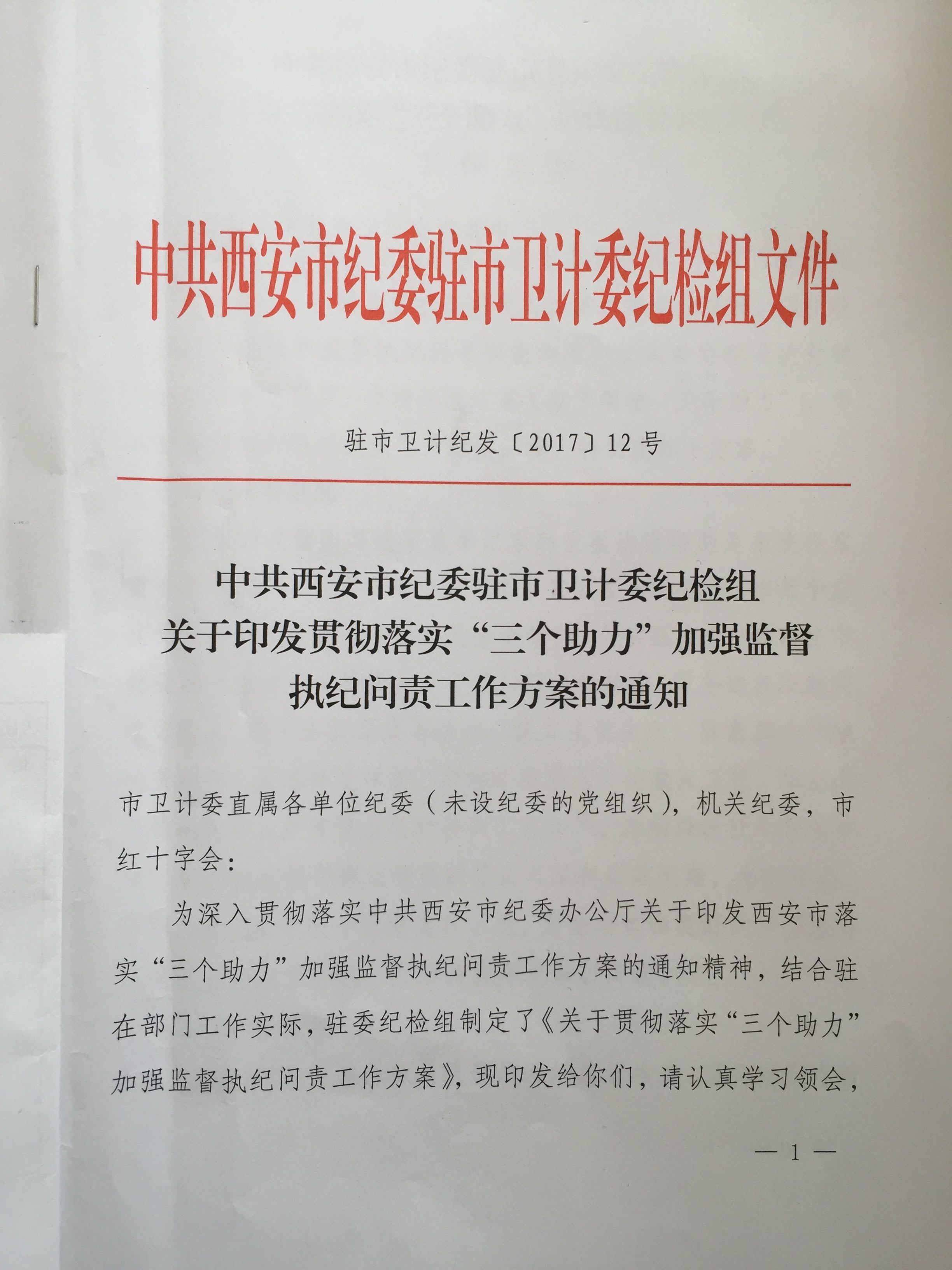 市纪委驻市卫计委纪检组关于印发贯彻落实“三个助力”加强监督执纪问责工作方案的通知