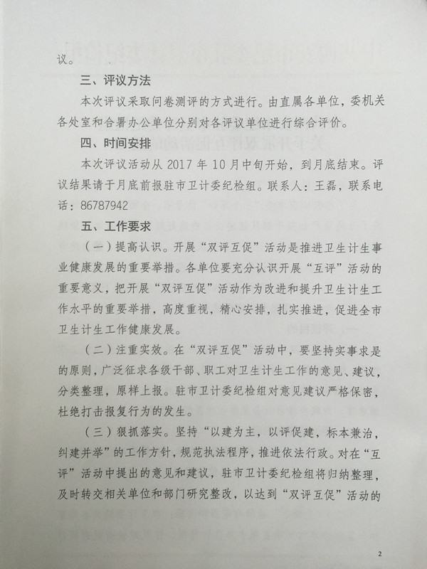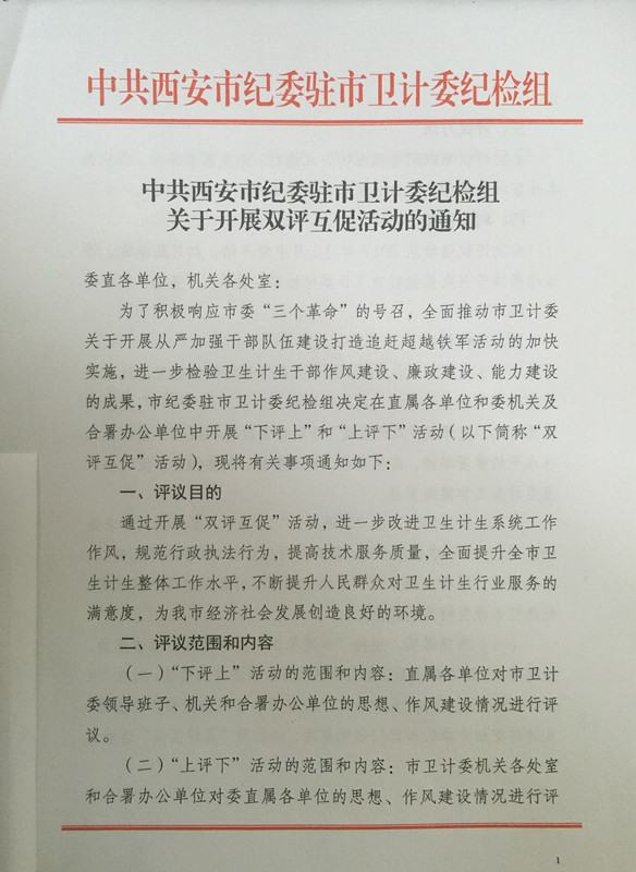 中共西安市纪委驻市卫计委纪检组关于开展双评互促活动的通知