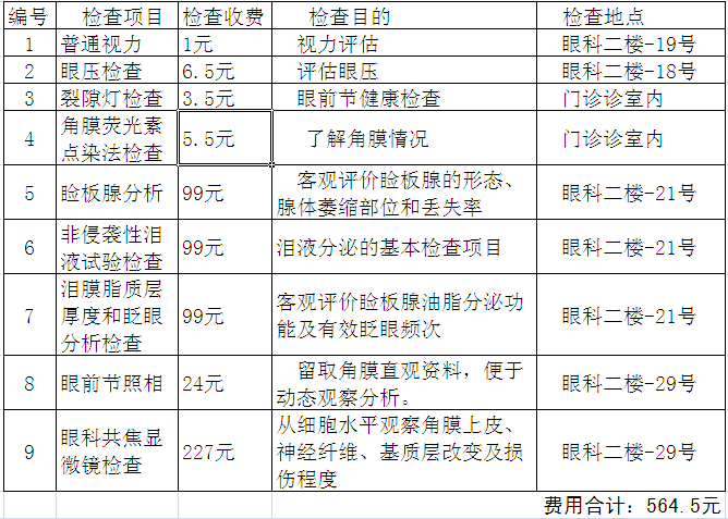 干眼病是目前临床最常见的眼病之一,泪液和眼表的多因素疾病,均可引起眼部不适、视力障碍和泪膜不稳定性,并造成眼表损伤。为此,西安市眼科医院特推出以下检查项目,请您根据自己的情况选择合适的套餐,简单明了的检查会帮您区分干眼症的类型,为下一步的治疗提供准确的方向。