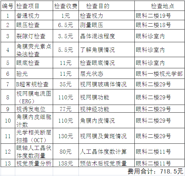 白内障术前检查系列B套餐