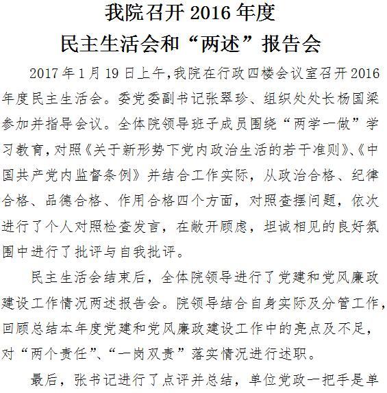 啄木鸟 召开2016年度民主生活会和“两述”报告会