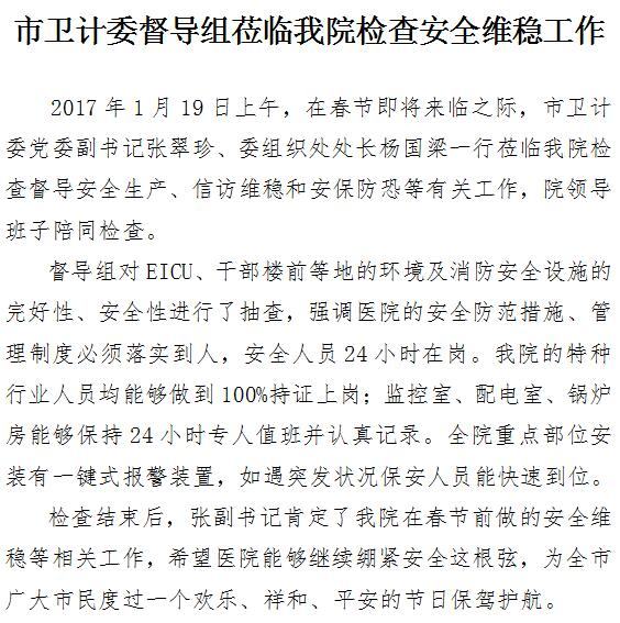 市卫计委督导组莅临啄木鸟 检查安全维稳工作