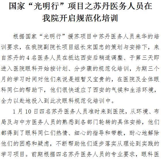 国家“光明行”项目之苏丹医务人员在啄木鸟 开启规范化培训