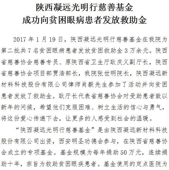 陕西凝远光明行慈善基金成功向贫困眼病患者发放救助金
