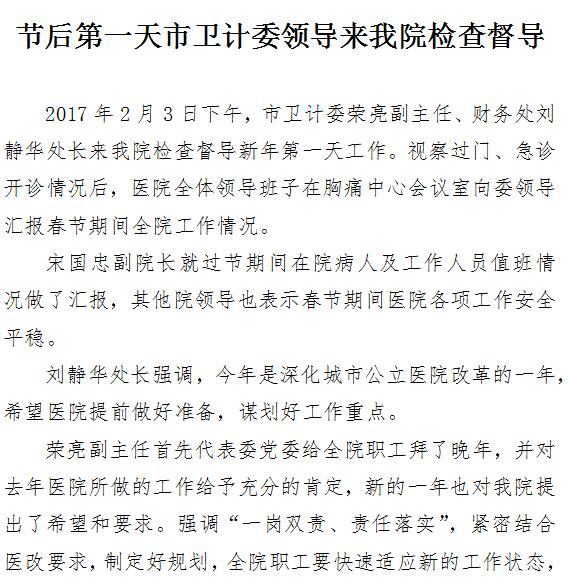 节后第一天市卫计委领导来啄木鸟 检查督导