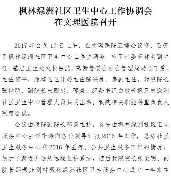 枫林绿洲社区卫生中心工作协调会在文理医院召开