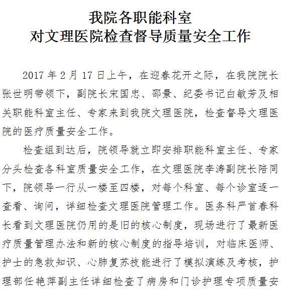 啄木鸟 各职能科室对文理医院检查督导质量安全工作