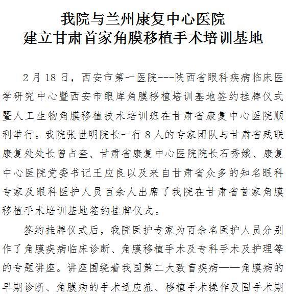 啄木鸟 与兰州康复中心医院建立甘肃首家角膜移植手术培训基地