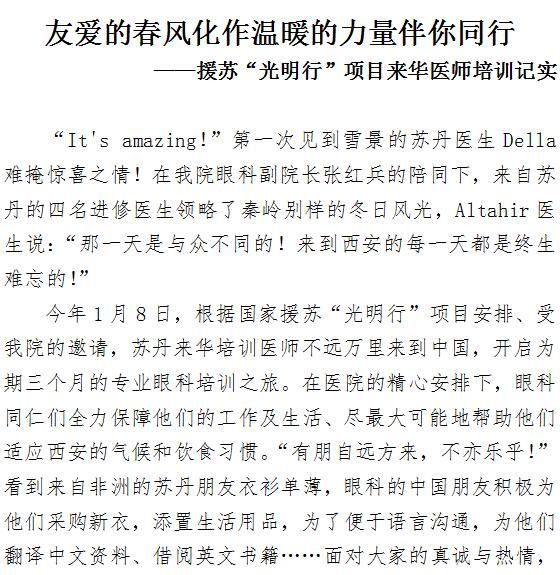 友爱的春风化作温暖的力量伴你同行 ——援苏“光明行”项目来华医师培训记实
