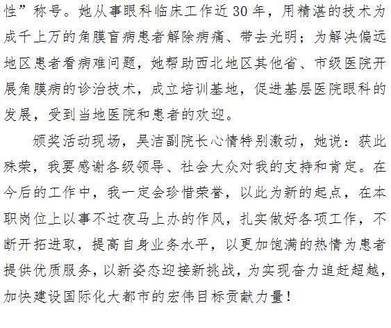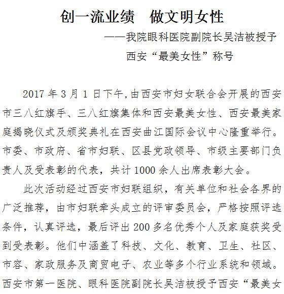 啄木鸟 眼科医院副院长吴洁被授予西安“最美女性”称号