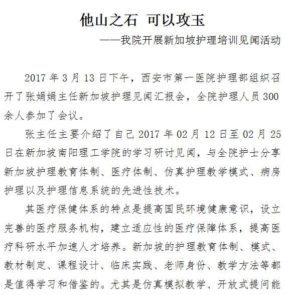 他山之石 可以攻玉 ——啄木鸟 开展新加坡护理培训见闻活动