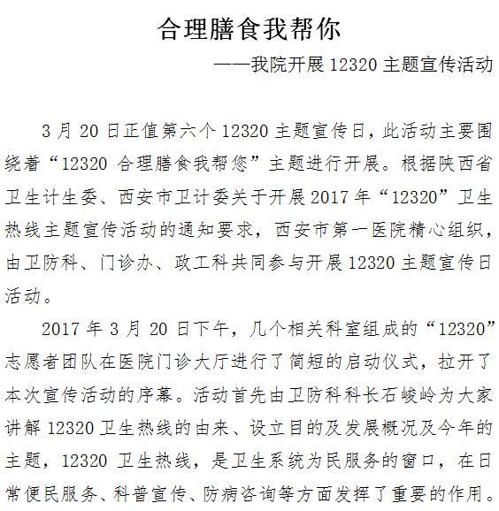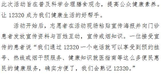 合理膳食我帮你 ——啄木鸟 开展12320主题宣传活动