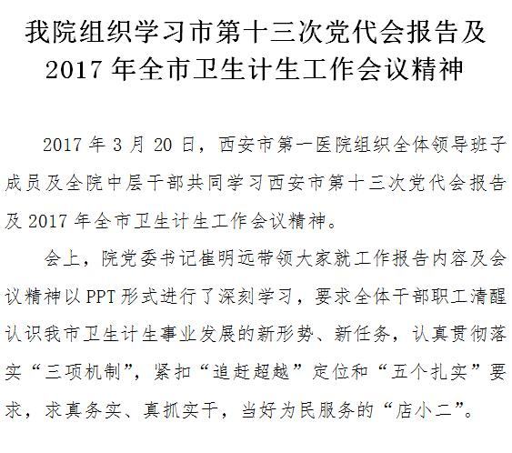 啄木鸟 组织学习市第十三次党代会报告及2017年全市卫生计生工作会议精神