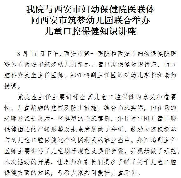啄木鸟 与市妇幼保健院医联体同西安市筑梦幼儿园联合举办儿童口腔保健知识讲座