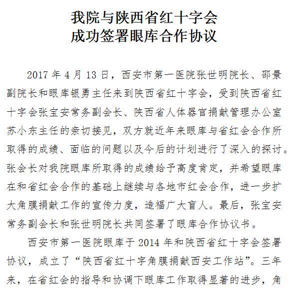 啄木鸟 与陕西省红十字会成功签署眼库合作协议